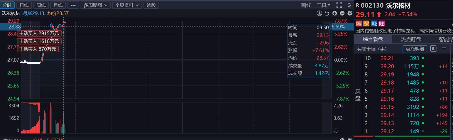 短线大师网-短线策略技巧,短线股票选股技巧,涨停板战法,量化选股,短线炒股,指标,黑马,交易秘诀,问财问句选股 » 沃尔核材超级资金介入后涨停