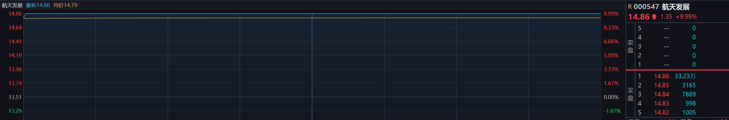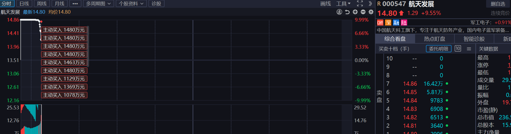 短线大师网-短线策略技巧,短线股票选股技巧,涨停板战法,量化选股,短线炒股,指标,黑马,交易秘诀,问财问句选股 » 航天发展十多笔超大资金抢筹 股票随后封死涨停