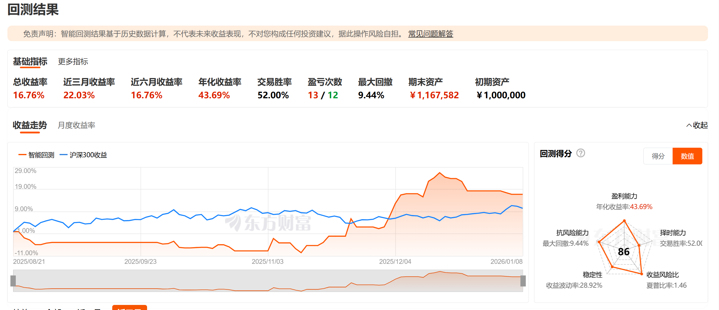 2,点智能回测,按照设置就可以模拟历史上,出现这样的走势,买入卖出,回测出好的策略